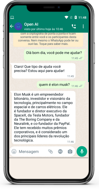 Pronto, você já tem o chat mais inteligente do mundo com inteligente artificial, direto pelo WhatsApp.